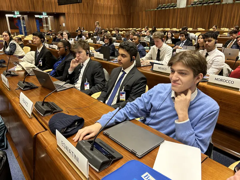 مؤتمر نموذج الأمم المتحدة الذي نظمته مدرسة فرني فولتير الدولية في مقر الأمم المتحدة ومنظمة العمل الدولية في جنيف، سويسرا، يناير 2024